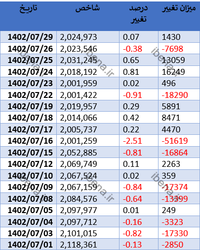 به گزارش پایگاه خبری نقدینه ، شاخص کل بازار سرمایه امروز (شنبه ۲۹ مهر) یک هزار و ۴۳۰ واحد رشد کرد و در کانال دو میلیون ۲۴ هزار واحدی ایستاد. بدین ترتیب در این روز شاخص کل بازار سرمایه ۰.۰۷ درصد تقویت شد.