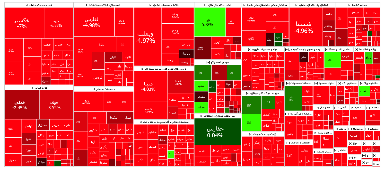 در این روز به ترتیب نمادهای فولاد، فارس، شستا، شپنا و کچاد بیشترین تاثیر منفی را بر شاخص کل بازار سرمایه داشتند و عامل افت بازار سرمایه شدند.