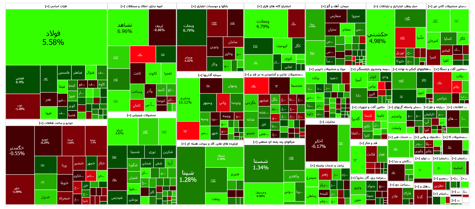 در این روز به ترتیب نمادهای فولاد، فارس، تاپیکو، فملی و شپنا بیشترین تاثیر مثبت را بر شاخص کل بازار سرمایه داشتند و عامل رشد بازار سرمایه شدند.