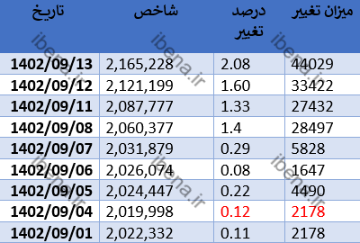به گزارش پایگاه خبری نقدینه ، شاخص کل بازار سرمایه امروز (دو شنبه ۱۳ آذر) ۴۴ هزار و ۲۹ واحد رشد کرد و در کانال دو میلیون ۱۶۵ هزار واحدی ایستاد. بدین ترتیب در این روز شاخص کل بازار سرمایه ۲.۰۸ درصد تقویت شد.