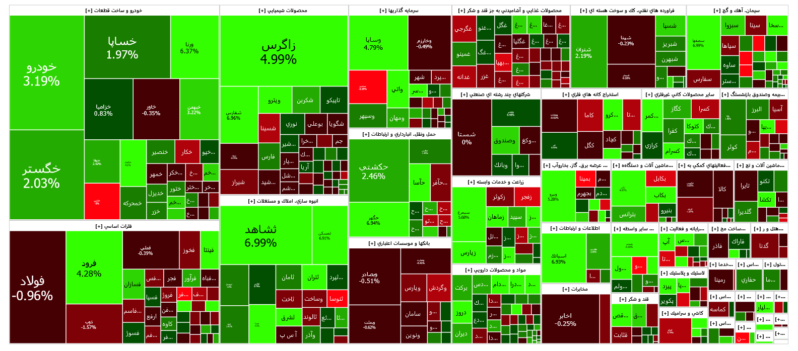 در این روز به ترتیب نمادهای فارس، خودرو، حکشتی، وصندوق و میدکو بیشترین تاثیر مثبت را بر شاخص کل بازار سرمایه داشتند و عامل رشد بازار سرمایه شدند.