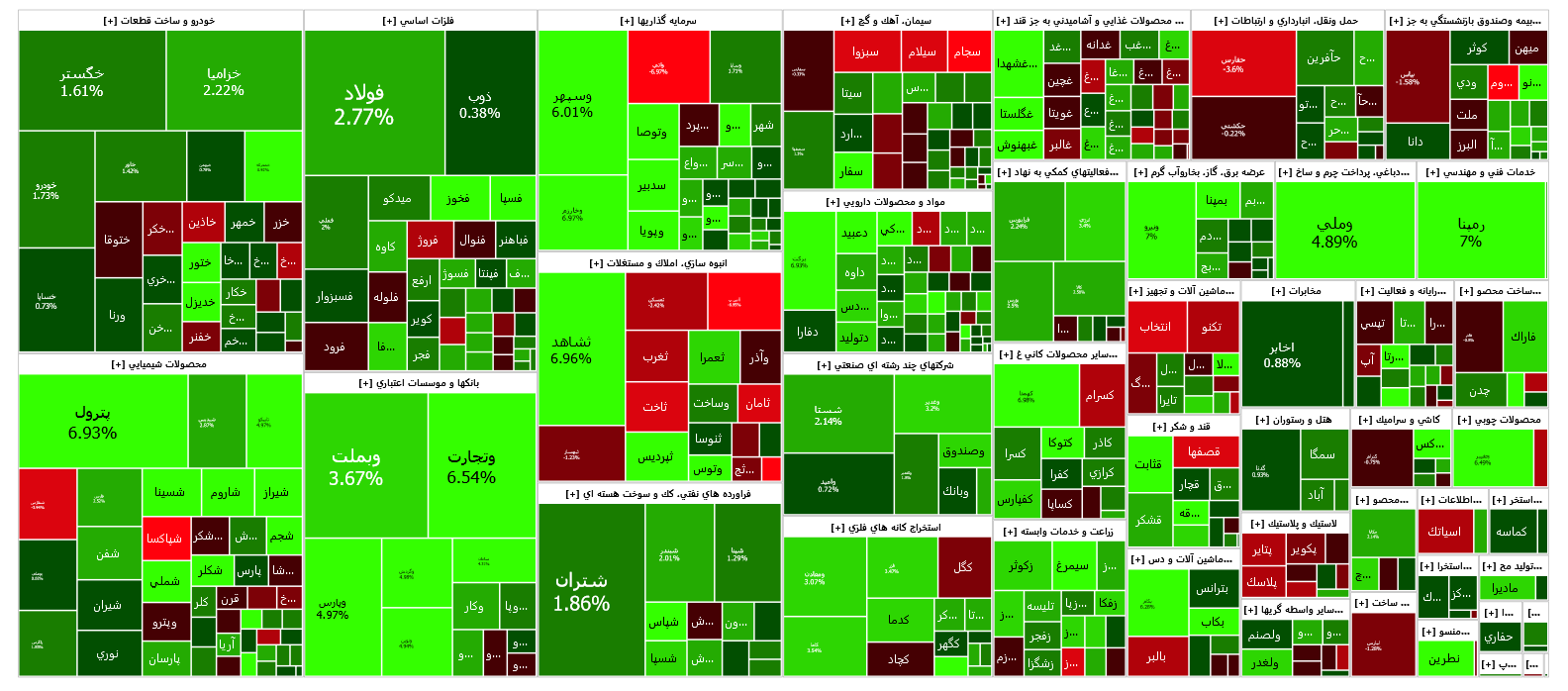 در این روز به ترتیب نمادهای فولاد، فملی، فارس، تاپیکو و وبملت بیشترین تاثیر مثبت را بر شاخص کل بازار سرمایه داشتند و عامل رشد بازار سرمایه شدند.