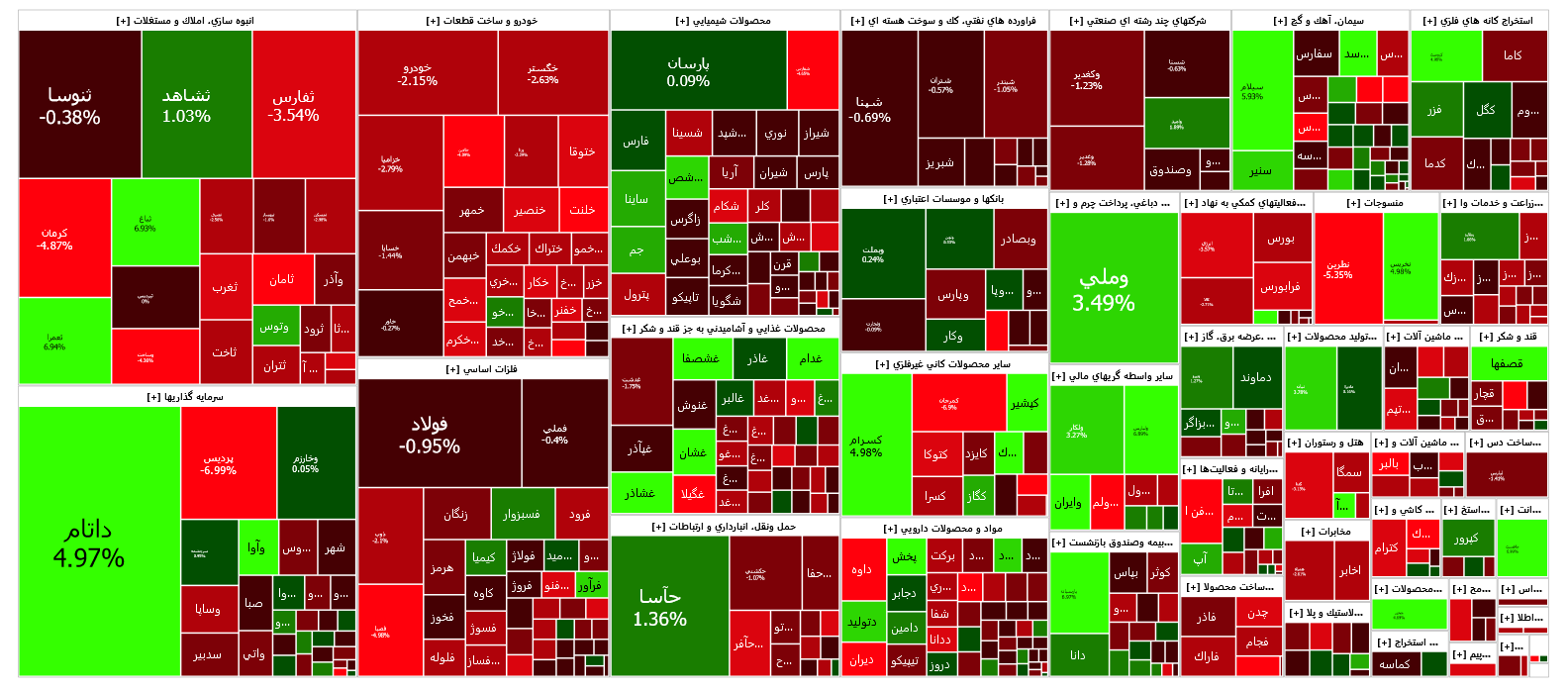 در این روز به ترتیب نمادهای فولاد، فملی، خودرو، وغدیر و شپنا بیشترین تاثیر منفی را بر شاخص کل بازار سرمایه داشتند و عامل افت بازار سرمایه شدند.