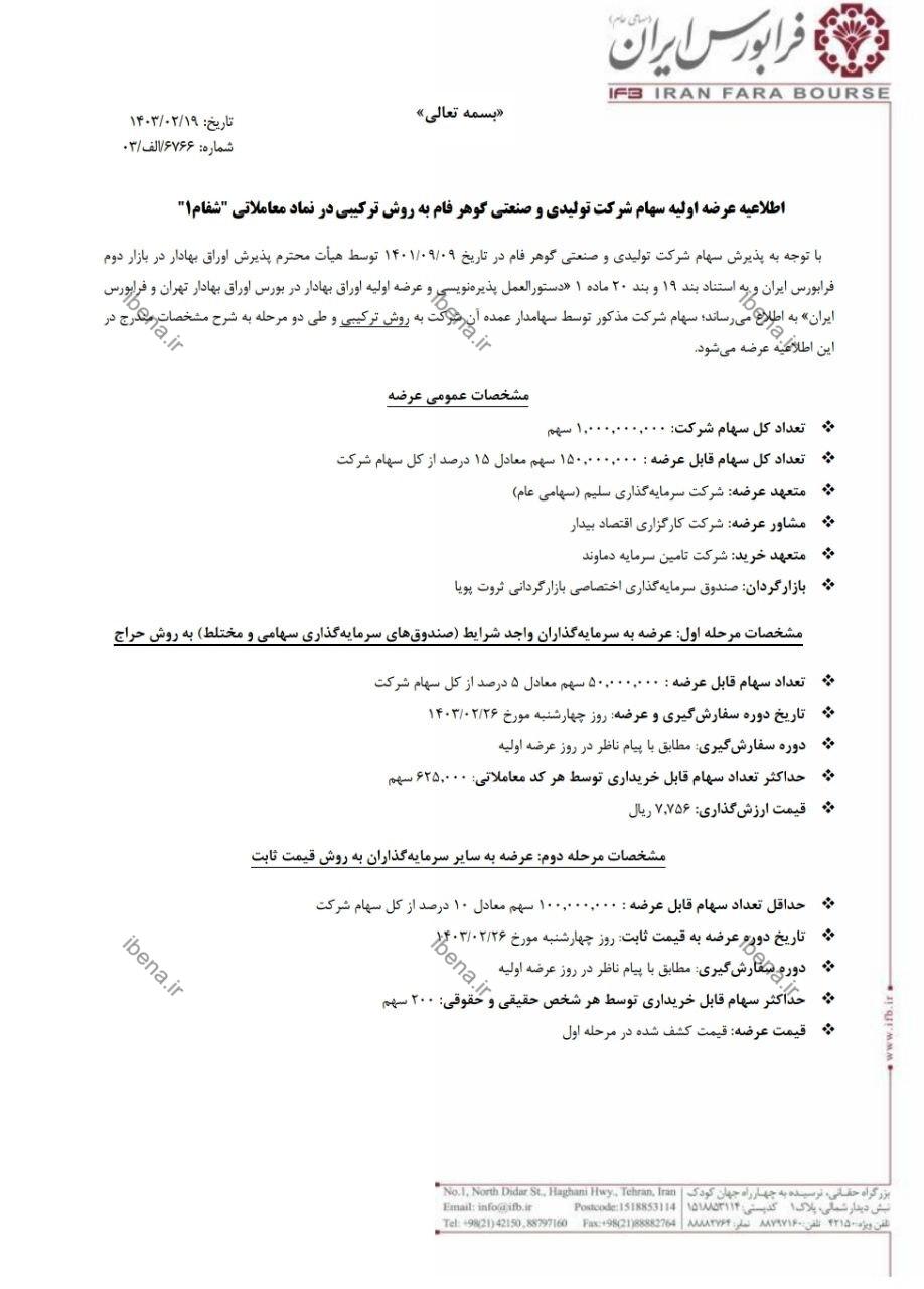 به گزارش پایگاه خبری نقدینه ، امروز ۱۵۰ میلیون سهم معادل ۱۵ درصد از سهام شرکت تولیدی و صنعتی گوهر فام عرضه اولیه میشود.