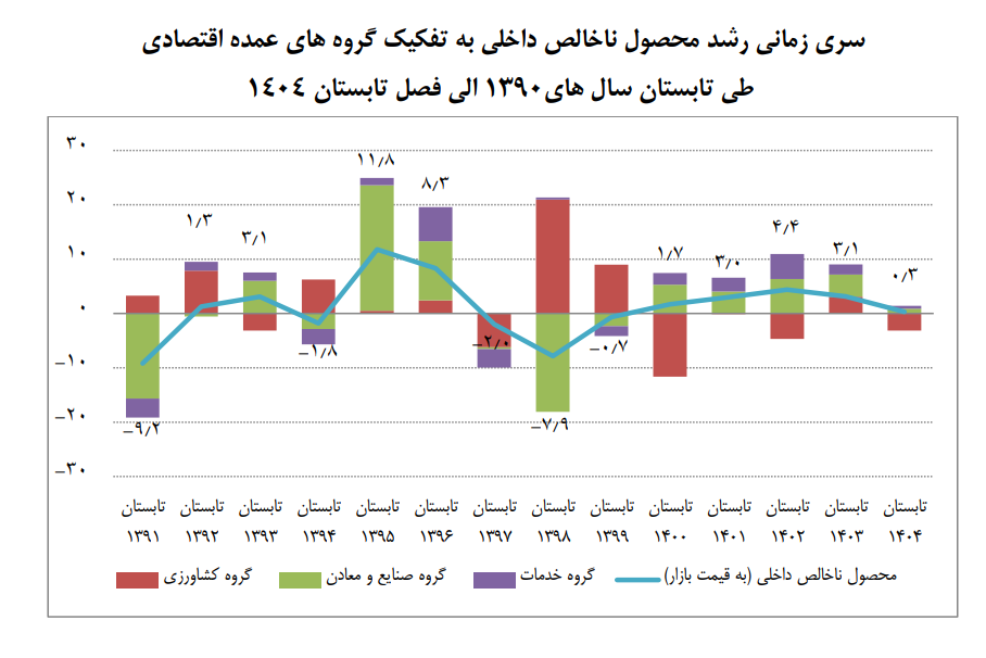 کاهش تولید در کشاورزی و صنایع؛ رشد ملایم در خدمات