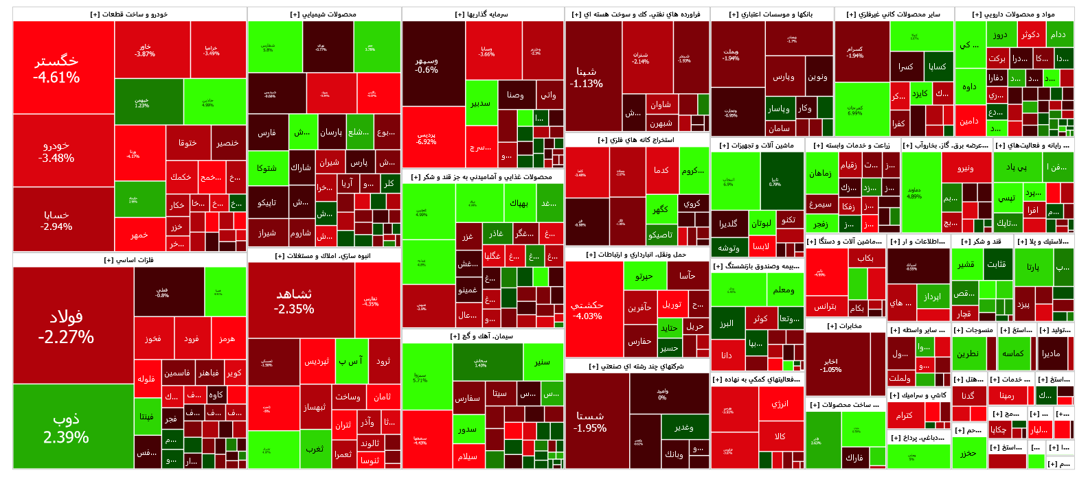 در این روز به ترتیب نمادهای فولاد، شستا، حکشتی، خودرو و فارس بیشترین تاثیر منفی را بر شاخص کل بازار سرمایه داشتند و عامل افت بازار سرمایه شدند.