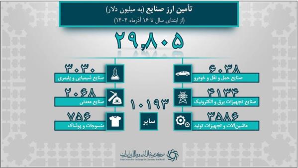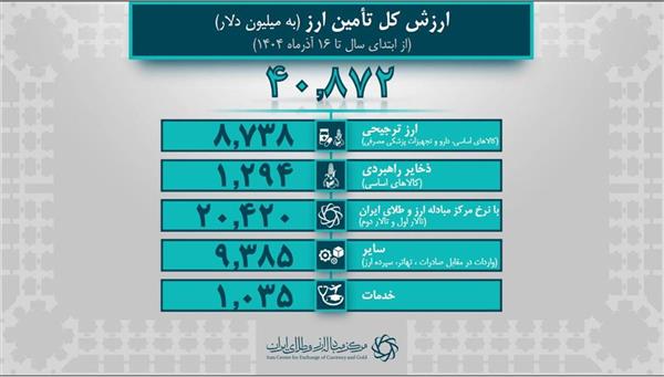 نقدینه - از ابتدای سال جاری تا 16 آذرماه در مجموع 40 میلیارد و 872 میلیون دلار برای نیازهای مختلف وارداتی کشور توسط بانک مرکزی تأمین ارز انجام شده است.