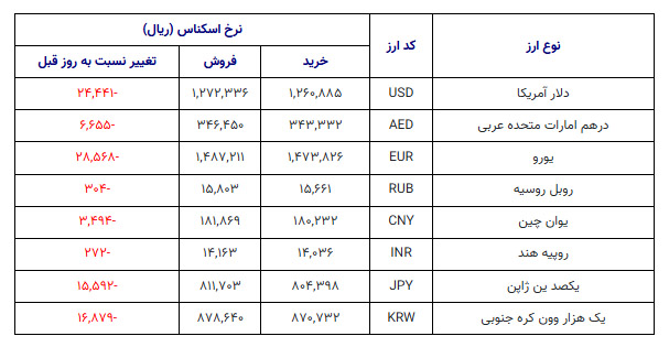 جدول نرخ اسکناس