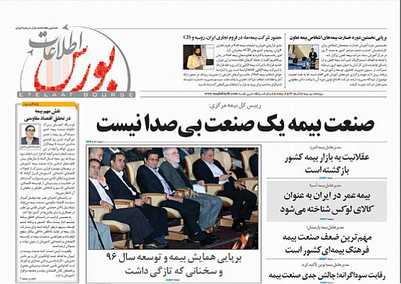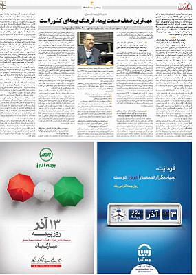 نقدینه- پایگاه خبری نقدینه با همکاری هفته نامه اطلاعات بورس، ویژه نامه روز بیمه را در هشت صفحه و به صورت گلاسه منتشر کرد.